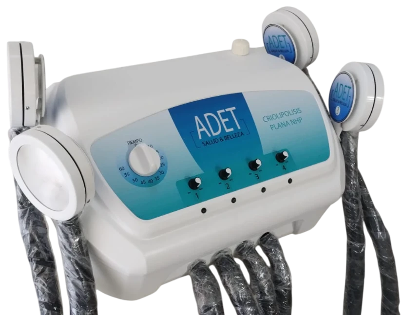 Este modelo NHP (económico) cuenta con cuatro cabezales radiales o circulares, permitiendo distribuir mejor el frio en la zona. A pesar de no tener control digital, cada uno de los cabezales cuenta con un control de potencia independiente para programarlo según las necesidades de cada tratamiento.
