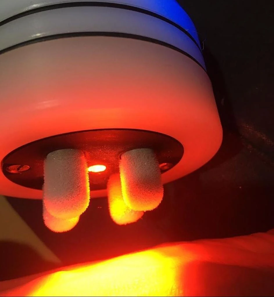 El manípulo corporal también cuenta con Dermoled, una luz roja (625nm) de alta potencia que ayuda a mejorar el aspecto de la piel (luminoterapia).